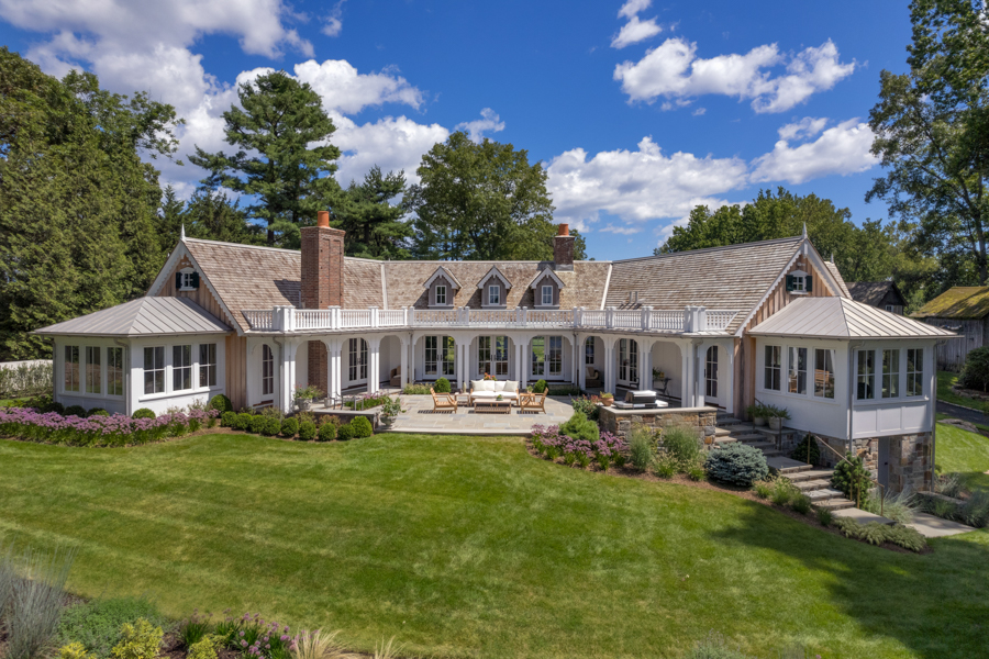 The project consisted of a complete renovation of a 1940 home in Darien and the addition of a two car Garage, Kitchen and Family Room wing. The 8,300 sqft colonial home, in plan, takes the shape of an elle, and reveals a formal facade from the street. However, moving around to the rear of the home, the scale begins to break down, resembling a farmhouse from the period, with a low- pitched, covered porch, and modestly detailed columns.